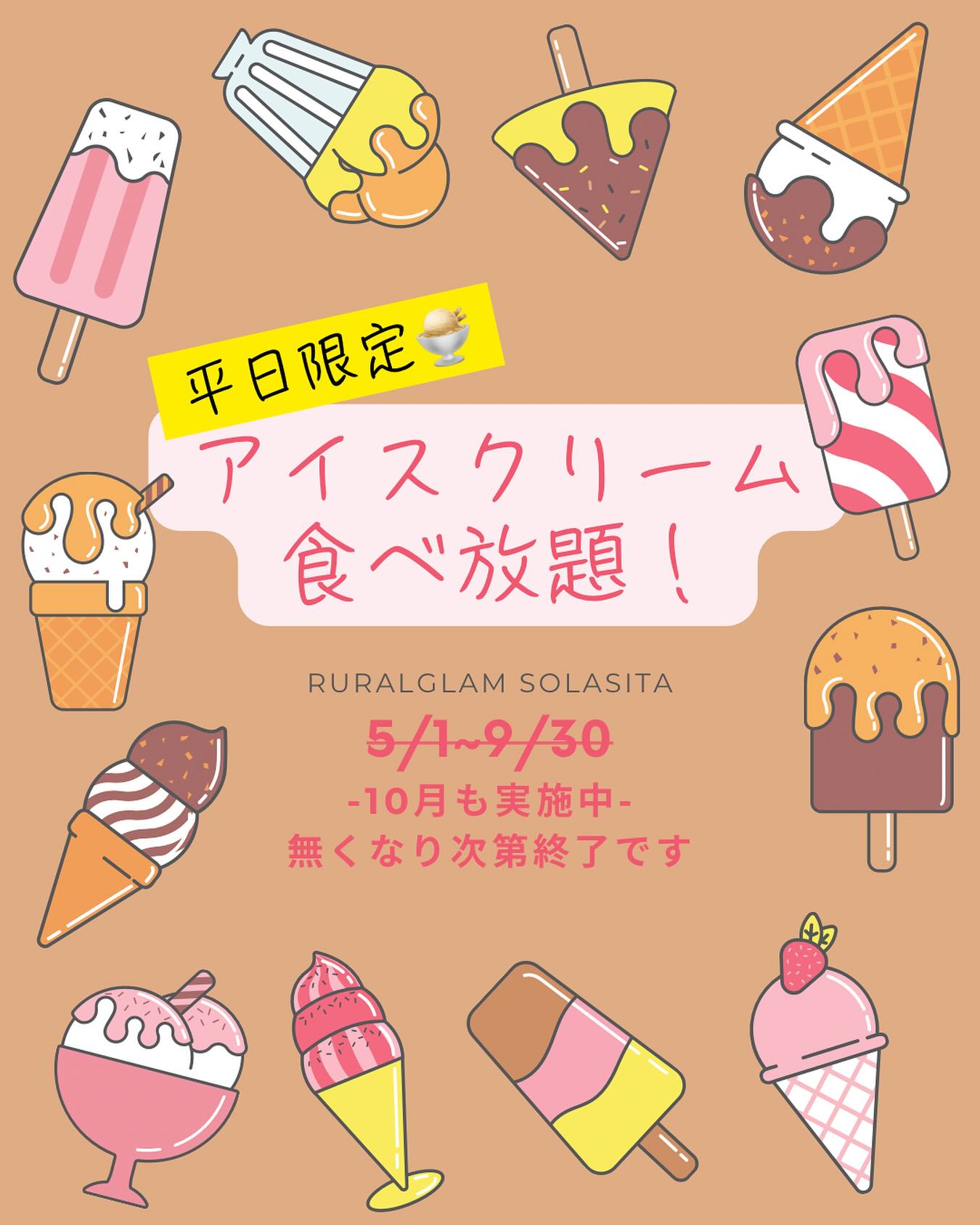 2025/10/02 2026/02/10 【平日限定!アイスクリーム食べ放題】9/30までとしておりましたが、期間を延長し10月も実施いたします!無くなり次第終了となりますのでご了承頂き、ご利用下さい♀️#ruralglamsolasita << 前の記事へ 次の記事へ >> 一覧へ戻る